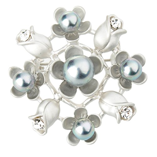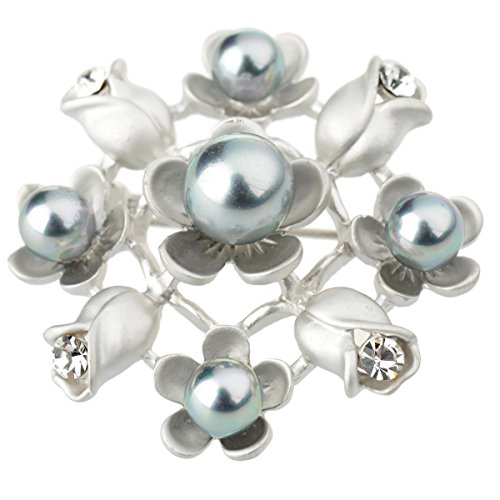 Title : Tagoo Bloomed Five Petal Flower and Rose Brooch Pin (Silver)