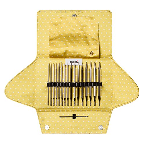 Double luck for all addiClick fans: It includes eight basic and eight lace tips, sizes 3.5 to 8, plus 3 cords of 80, 100 und 120 cm (30", 40" and 47") of the perfect addi quality, made to the happy and high-quality sun-yellow set version.