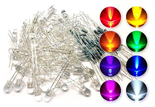 microtivity IL188 5mm Assorted Clear LED w/ Resistors (8 Colors, Pack of 80)