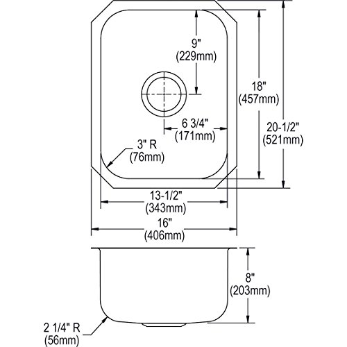 Dayton DXUH1318 Single Bowl Undermount Stainless Steel Bar Sink
