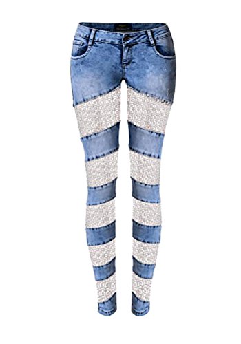 -. Title : Kyphtem スキニージーンズ レディース セクシー 美脚 ローライズ スリムジーンズ (特別なスパイラルデザイン,レース+デニム)