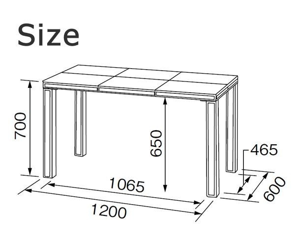 | サイズ | W1200×D600×H700mm 個装サイズ:153×68×12cm |