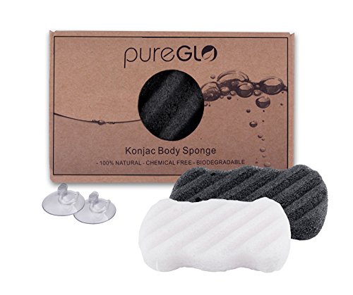 All Natural Konjac Sponge 2 Pack – pureGLO Large Bath & Shower Exfoliating Scrub Set - Disposable Facial Cleansing Charcoal and Original Sponges for Men,...