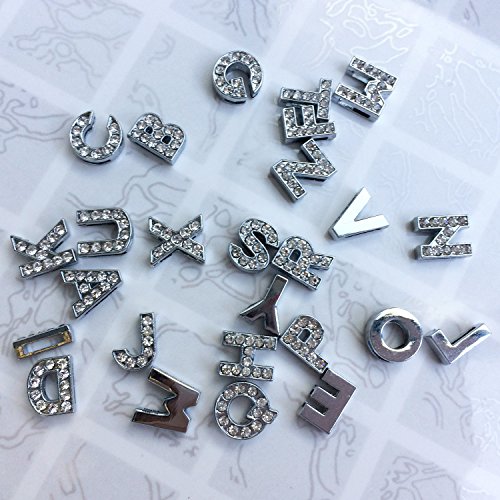 RJHome Letter Charms A-Z Letters 8mm Slide Charms Rhinestone Charms (A-Z Letter)