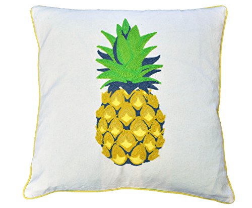 Envogue International Pineapple Chainstitch Embroidered Accent Pillow, 20" x 20", Yarrow