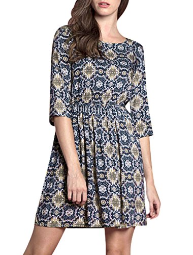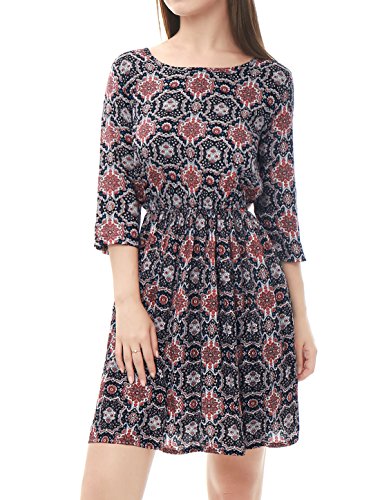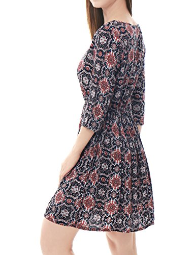-. Title : Allegra K (JP) フレアワンピース ドレス 七分袖 花柄 膝上丈 レディース