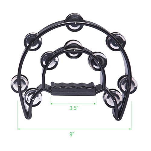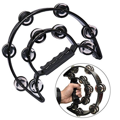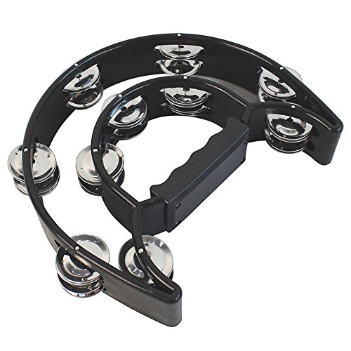 Luvay Double Row Tambourine - Metal Jingles Hand Held Percussion, Black Cutaway Design