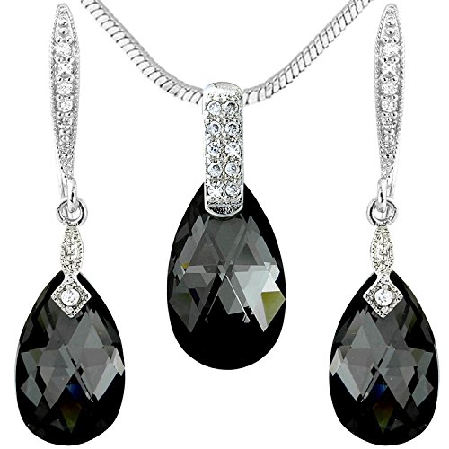 Designer piece - Beautiful and elegant tear drop earrings and pendant set made from Swarovski element crystals