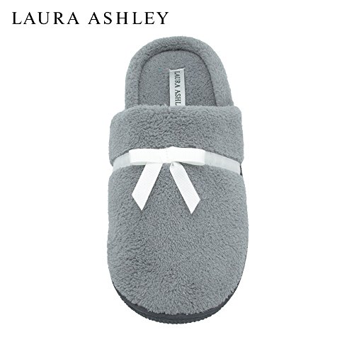 -. Title : Laura Ashley Ladies Soft Terry Slip On Slippers Heather Gray Size M
