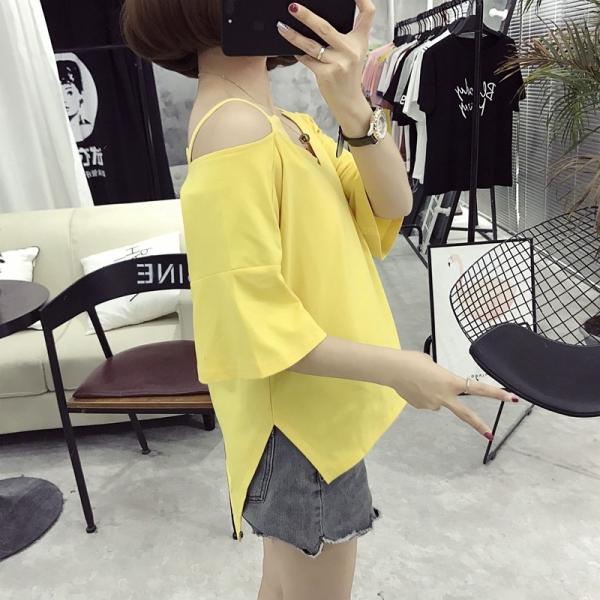 肩の紐がセクシーなシャツ♪背中もざっくり開いてるのでこれからの季節に大活躍間違いなし!【カラー】ホワイト、カーキ、イエロー、ブラック【サイズ】【M】着丈:前55・後65/胸囲98(cm)【L】着丈:前56・後66/胸囲102(cm)【XL】着丈:前57・後67/胸囲106(cm)※製品により多少の誤差が生じる場合がございます。【素材】綿・ポリエステル 【ご使用上の注意】着用に問題のない製法のほつれ、商品の性格上、開封された商品・一度でも着用されました商品の返品・交換は一切お受け致しません。イメージと違う、サイズが合わない等の理由での返品は一切受け付けておりません。購入後のサイズ交換は対応しておりません。生産終了後すぐ発送しているため匂いがある場合がございます。ご了承ください。【生産国】made in china※商品はご注文を頂いてから2週間前後の到着となります。