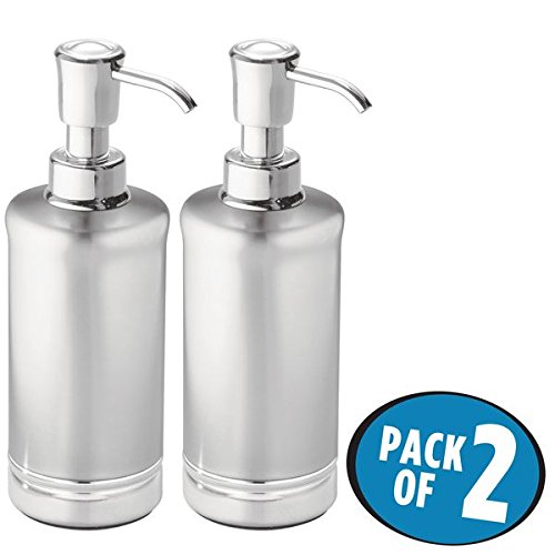 mDesign Liquid Hand Soap Dispenser Pump Bottle for Kitchen, Bathroom | Also Can be Used for Hand Lotion & Essential Oils - Pack of 2, Tall, Split Finish