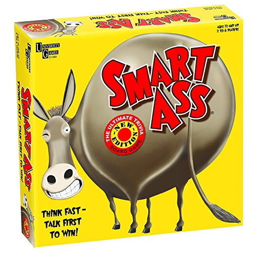 Who’s the Smart Ass among your friends and family? Find out with this outrageous, fast-paced party game. Each question has ten clues. The first player to yell out the correct answer wins the round and takes a step closer to being the ultimate Smart Ass. No specific knowledge base is required, so even a Dumb Ass can win!
