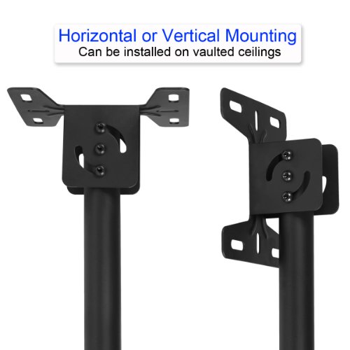 -. Feature : Swivel ceiling plate supports vaulted ceilings and side ceiling stud install / Universal design that fits 32-63" displays up to 165LBS / Provides 60° Rotation and 15° tilt / Adjustable height 32.5"-50.5" From the Ceiling / Installation Manual and all Hardware Included