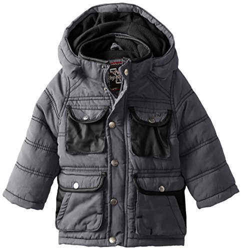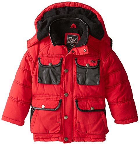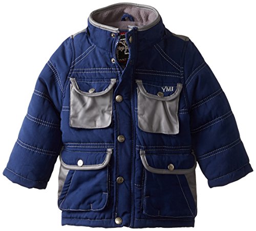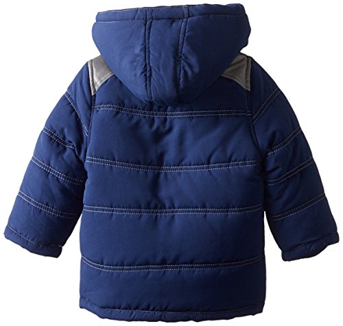 YMI Little Boys' Toddler Bubble Jacket with Contrasting Pleather Pockets and Detachable Hood, Navy, 3T