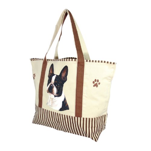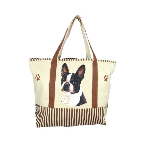-. Title : E&S Imports Dog Breed Tote Bag - Boston Terrier Brown Striped Tote Bag