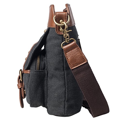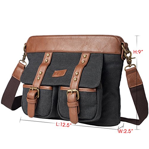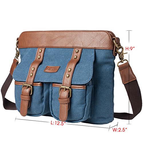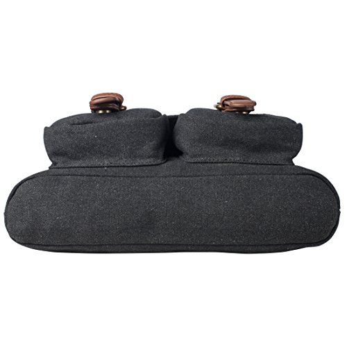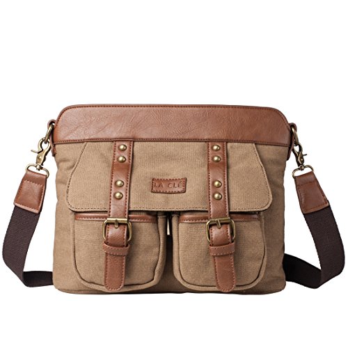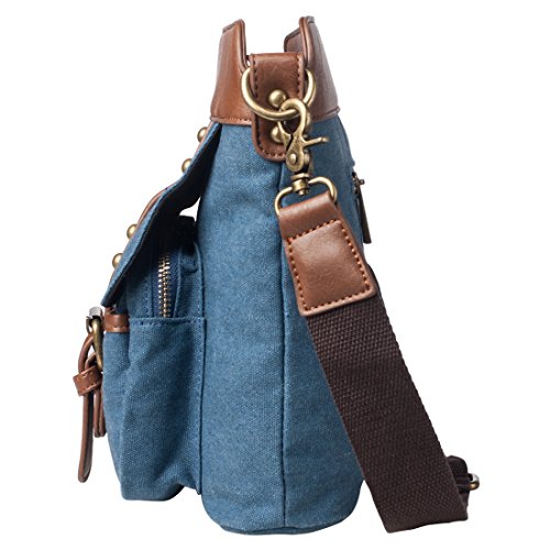 -. Title : La Cle LA-035 Canvas Rivet Crossbody Satchel Bag Unisex Multi Pockets