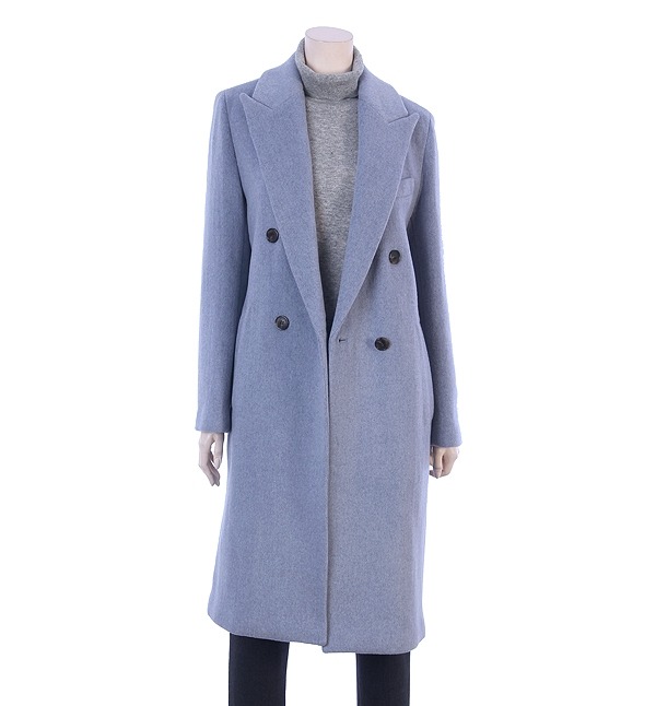 SHES MISS, 베이직한 디자인으로 깔끔하여 클래식한 분위기를 연출하는 더블버튼 모직 하프코트입니다