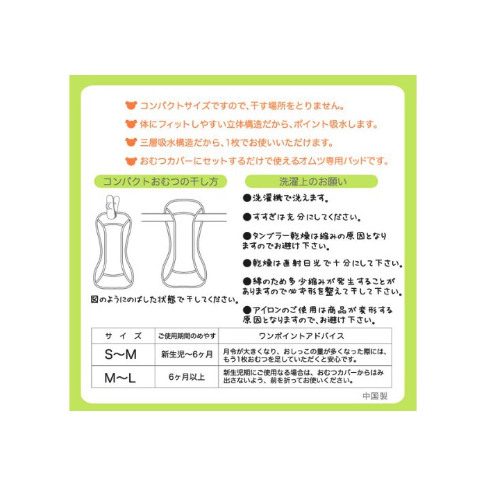 콤팩트 사이즈에 세탁 때,말리는 장소를 잡지 않습니다.몸으로 피트 한 입체 구조이기 때문에,포인트흡 수 합니다.3 층구조이기 때문에,1매에 사용하실 수 있습니다.