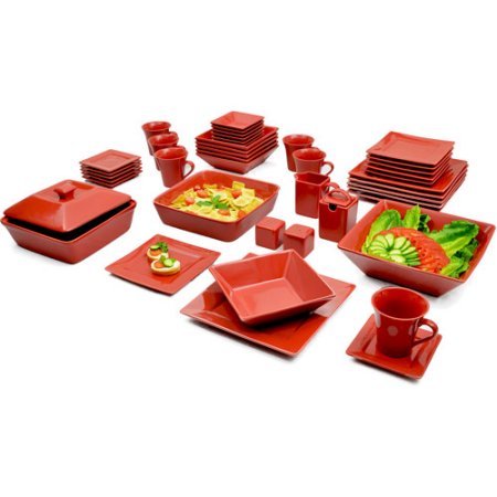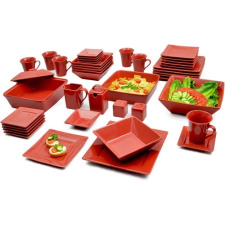 (10 Strawberry Street Nova)/Kitchen Dining/Tableware/DIRECT FROM USA/10 Strawberry Street Nova Square Banquet 45-Piece Dinnerware Set (Red)