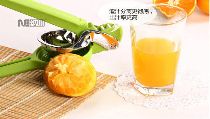 Nachuan manual juicer juice machine pressed orange juice machine mini lemon squeezed fruit juicer machine stainless steelThis is a pro manual juicer? because it is pure manual? and finally there will be some residual pulp juice oh? mind pro mercy? even to shoot! But the juice is squeezed out of the natural? so some tips on the press? [such as] oranges? choose some smaller? then cut in half? to which the face skin? so? under pressure? the other half can peel into valve? the pressure is not clean when to add the following? so that only the best of an orange squeeze more juice.