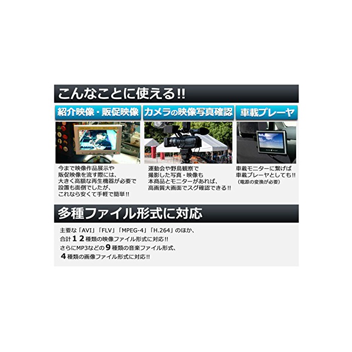「AVI」「FLV」「MPEG-4」「H.264」의 외에,합계12종류의 영상 파일 형식에 대응!!