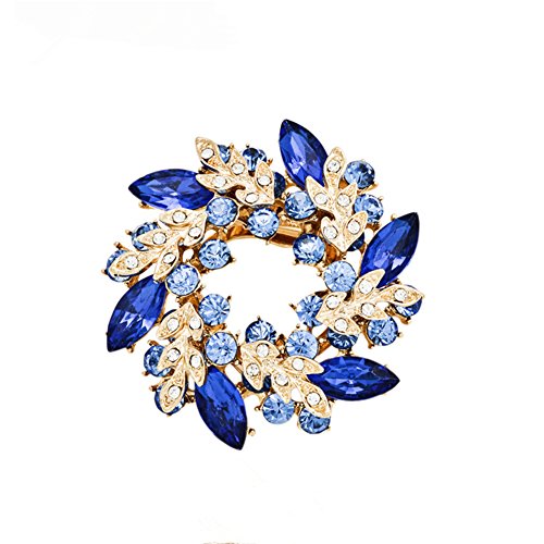 -. Title : (三月問屋)リース風 リーフ 花輪 ブローチ ブルー