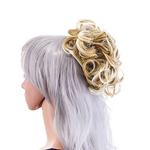 SWACC Short Messy Curly Dish Hair Bun Extension Easy Stretch hair Combs Clip in Ponytail Extension Scrunchie Chignon Tray Ponytail Hairpieces (Blonde...