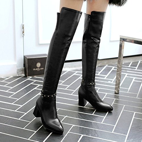 Binding : Apparel Product Description The pair of right shoes can make all the difference. The boots season comes. A pair of long boots is a must-have for a lady who want to be impressed in the crowed. If you're trying to get boots that will send a message with your every step, there's no finer footwear to add glamour close to you than these tall boots from Mofri. These boots don't whisper; they scream with their distinctive and trendy design. This pair of boots make you stand out in any crowd and are sure to heat things up no matter what you wear with them. The block heels raise your height and giving the shoes a chunky shape that is reflection of the latest trends. These shoes from Mofri is made from top quality vegan synthetic leather. Leave those boring basic boots behind. Make this pair boots as your fashion secret weapon and you'll be able to have some sexy appeal which will be the soul of your everyday ensembles. Order a pair in your favorite color! Can't decide? Why not get more? You'll still pay less than the price you would for a single designer pair elsewhere. We will make you always be on the cutting edge of women' s fashion. Mofri is a legal trademark which has registered in United Stated Patent Trademark Office. All right reserved. 0