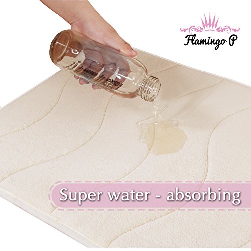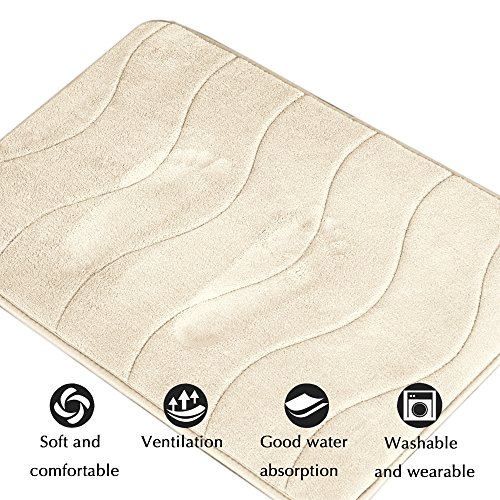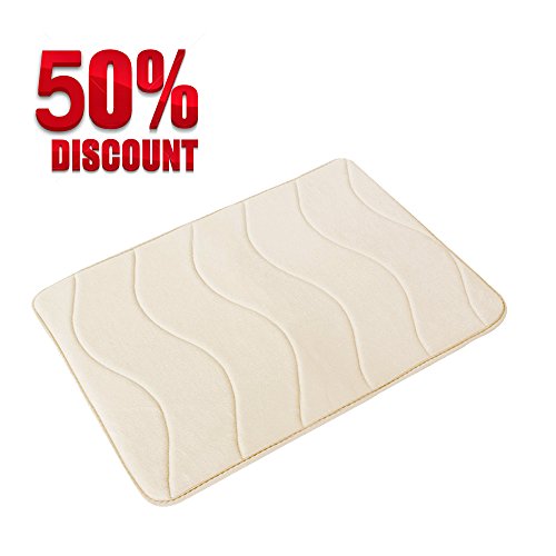 Soft Non Slip Absorbent Bath Rugs, Memory Foam Bath Mats by FlamingoP (Ivory, Waved Pattern, Size:W17"xL24")