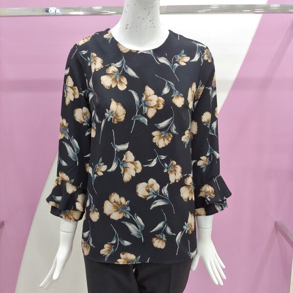 가을신상으로 소매프릴로 포인트를 준 블라우스.빅플라워 프린트로 더욱더 멋스럽게 표현한 블라우스.정사이즈 구매.