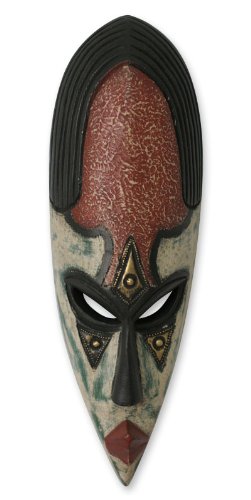 NOVICA Decorative Nigerian Large African Rubber Wood Mask, Red 'Equality In Marriage'