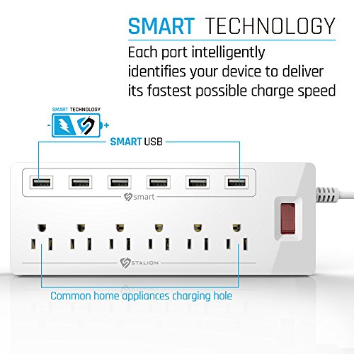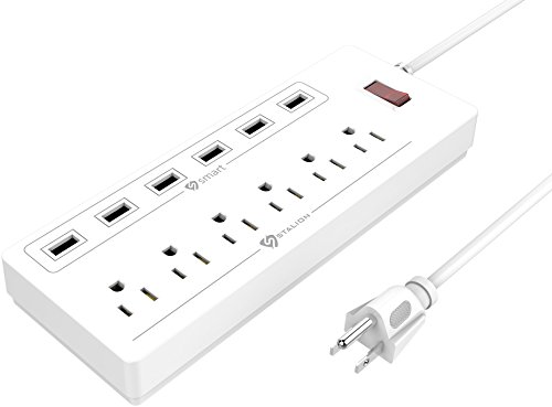 Stalion Surge Protector Power Strip Socket 900 Joule with 6-USB Charging Ports & 6-Outlets Universal for Home & Office (6-Foot Cord-White)