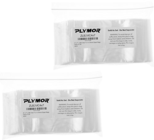 Plymor 4" x 7", 2 Mil (Pack of 200) Zipper Reclosable Plastic Bags