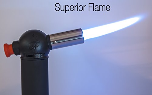 -. Feature : SUPERIOR DESIGN AND QUALITY - This multi-functional kitchen torch has a unique smooth finish with rubber grip and stainless steel tip. Additionally, the electronic ignition feature provides an instant flame / MULTI-FUNCTIONAL TORCH - This butane torch can be used for alternative applications such as welding, soldering, jewelry, plumbing, car repairs or electrical repairs / ADJUSTABLE FLAME INTENSITY SWITCH - Have total control over how intense you want the flame to be / CONTINUOUS FLAME LOCK - Easily put the flame on auto pilot to have a hands free flame for extended periods of time / JULIANNA SAID IN HER REIVEW- "The Hudson Pro culinary torch fits nicely in my palm. The ergonomic pistol grip is comfortable. The torch lights every time without fail, and puts out a good heat"
