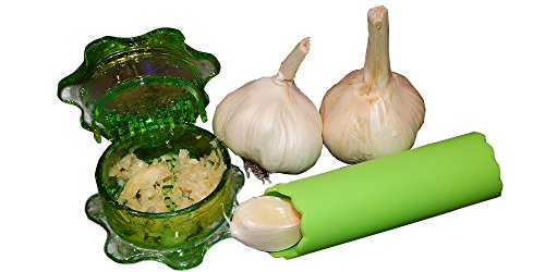 Premium Quality Silicone Garlic Peeler and High Grade Garlic / Herb Crusher Kit in Green By Gephart Gadgets