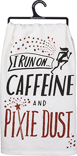 Primitives by Kathy Glitter Kitchen Towel - I Run On Caffine and Pixie Dust