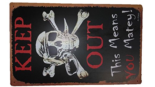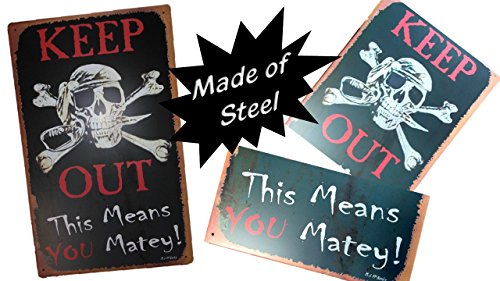 AMAZING No Trespassing Sign - Pirate Sign - Keep Everyone Off Your Property With This Great Keep Out Matey Metal Pirate Sign - Skull Sign - Keep Out Sign