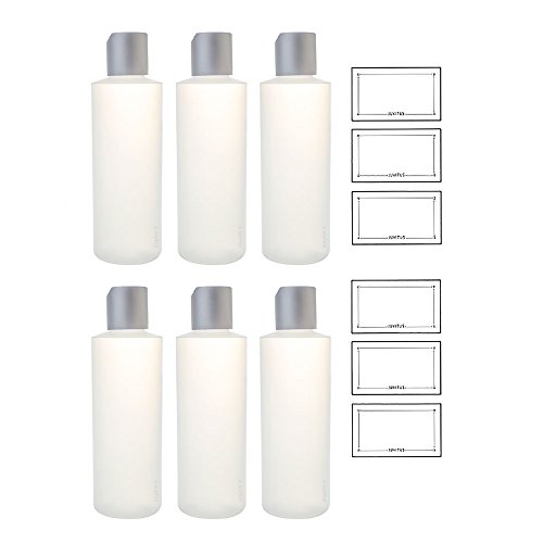 Clear Natural Refillable Plastic Squeeze Bottle with Disc Cap - 6 oz (6 Pack) + Labels