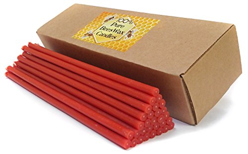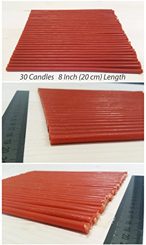 Natural 100% Pure Beeswax Candles - Amber Red Color in Gift Box (30 Natural Candles x 8 Inch (20 cm))