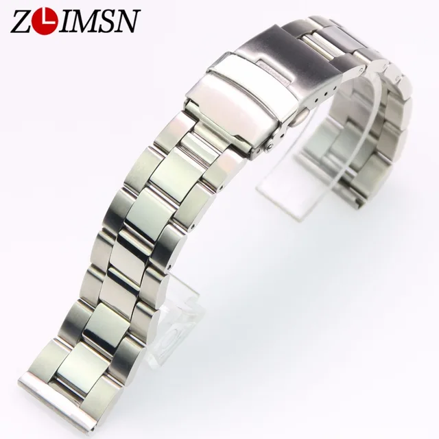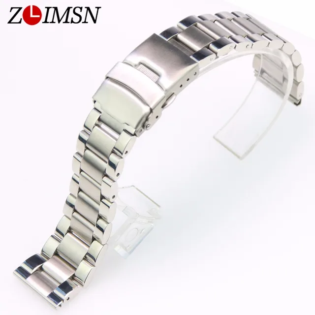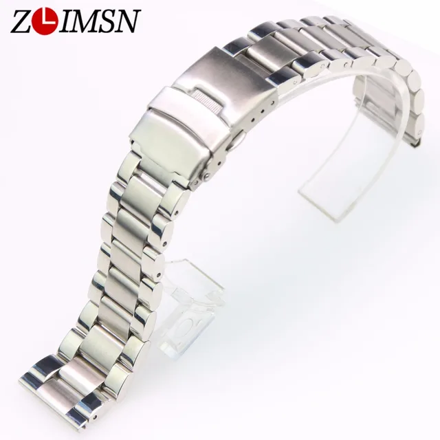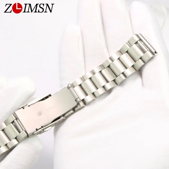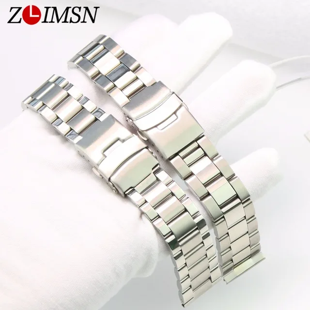 ZLIMSN 시계 스트랩 은색 남성 시계 줄 순수 솔리드 스테인레스 스틸 버클 3 링크 시계 밴드 팔찌 18 미리메터 20 미리메터 22 미리메터 Relogio