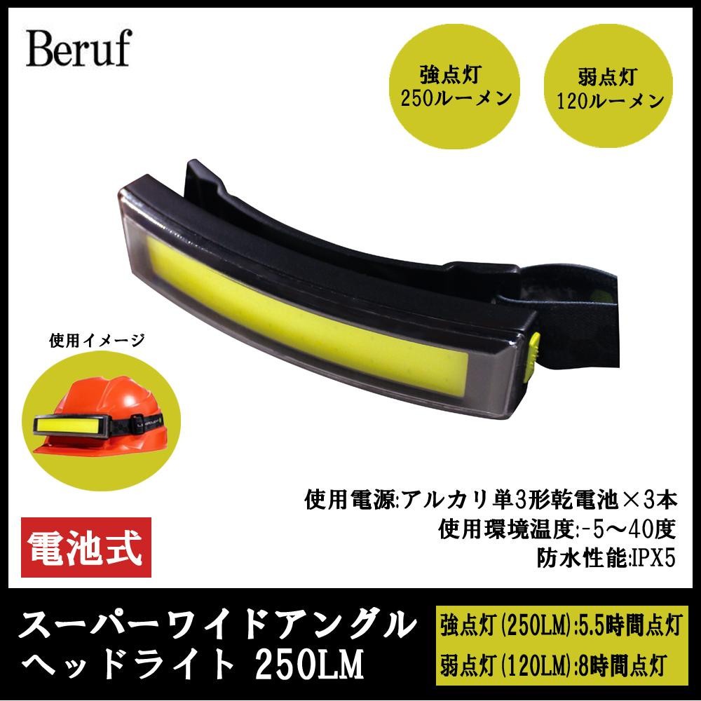 広角照射(最大度)で広範囲が照らせる、最大250LMの高出力タイプヘッドライトです。 |