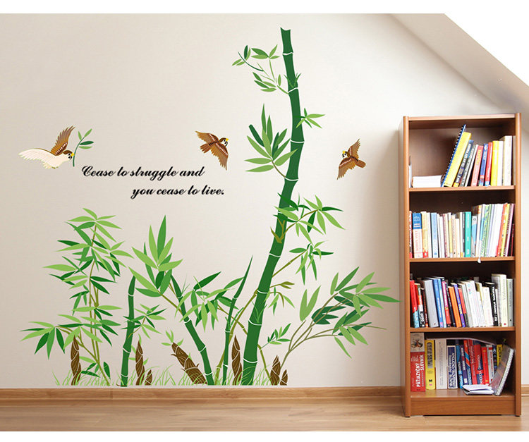 客厅背景墙墙壁贴纸书房中国风中式装饰墙纸贴画可移除竹子墙贴纸