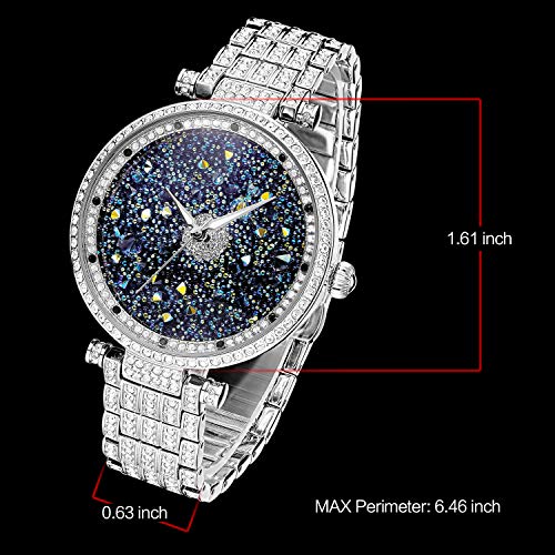 Brand, Seller, or Collection Name:P.R.Incess Butterfly Part Number:HL639B Item Shape:Round Dial window material type:Glass Display Type:Analog Clasp:Push-button-clasp Case material:Brass-plated stainless steel Case diameter:41 millimeters Case Thickness:13 millimeters Band Material:Stainless steel Band width:16 millimeters Band Color:Silver Dial color:Blue Calendar:Day Special features:Chronograph Movement:Japanese quartz Water resistant depth:30 Meters
