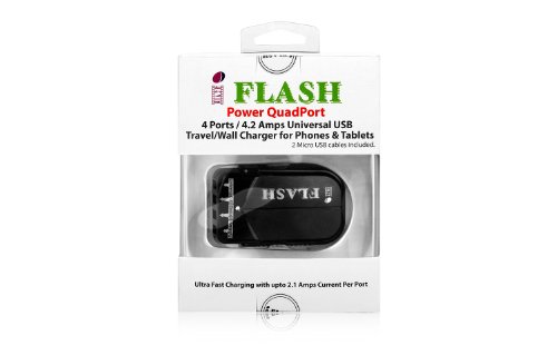 iFlash® 21W/4.2A 4-Port USB Wall Charger / Rapid Travel Charger Portable Charger for Apple iPhone 6 Plus / 6 / 5S 5C 5 4S 4, iPad 4/5 Air 2 Mini 2 /3 , iPod Touch, Samsung Galaxy Tab 2/3/4/Pro/S 101", Galaxy S6 Edge / S6 / S5 S4 S3 S2, NOTE 4 / 3 II, Andr
