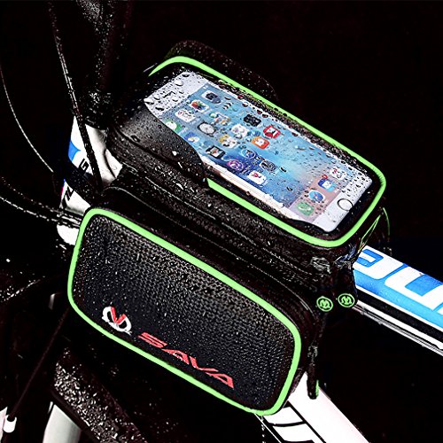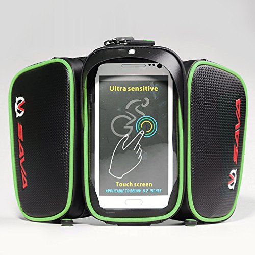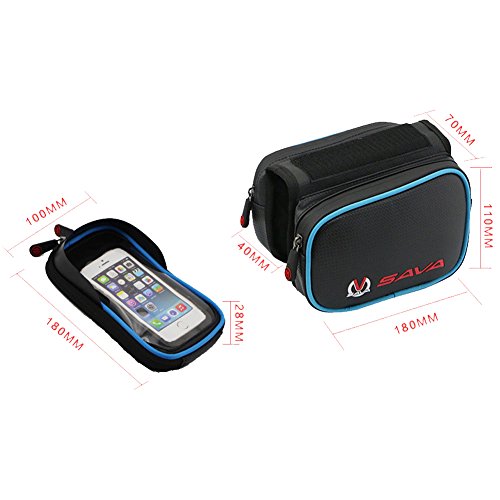 Studio : SAVADECK Publisher : SAVADECK Binding : Misc. Product Description SAVADECK Cycling Frame Bag Multi-Functional Waterproof Road Bike Mountain Bicycle Pannier for Cellphone Below 6.0 inch Tube Handlebars Bag Specifications: Item:SAVADECK 3 in 1 Cycling Frame Bag. Color: Black Blue/ Black Green/ Black Red. Size(top cellphone pouch):7.09"*3.94"*1.1"/180 x 100 x 28mm (L x W x H). Size(one of doulbe bags):7.09"*1.57"*4.33"/180 x 40 x 110mm (L x W x H). *The top pouch designed with big window.The exta large window fits for cell phones under 6.0"(Such as Iphone7 Plus\Iphone 7\Iphone 6s Plus\Iphone 6s and so on). *One cellphone pouch and Two main pockets on both sides to carry more of your belongings that are vital to your ride- Phone,first aid,flashlight,cycling sunglassess or glasses,purse,power bank and so on.