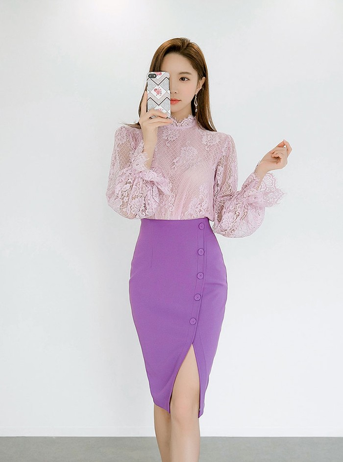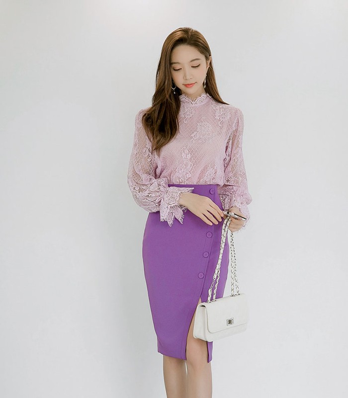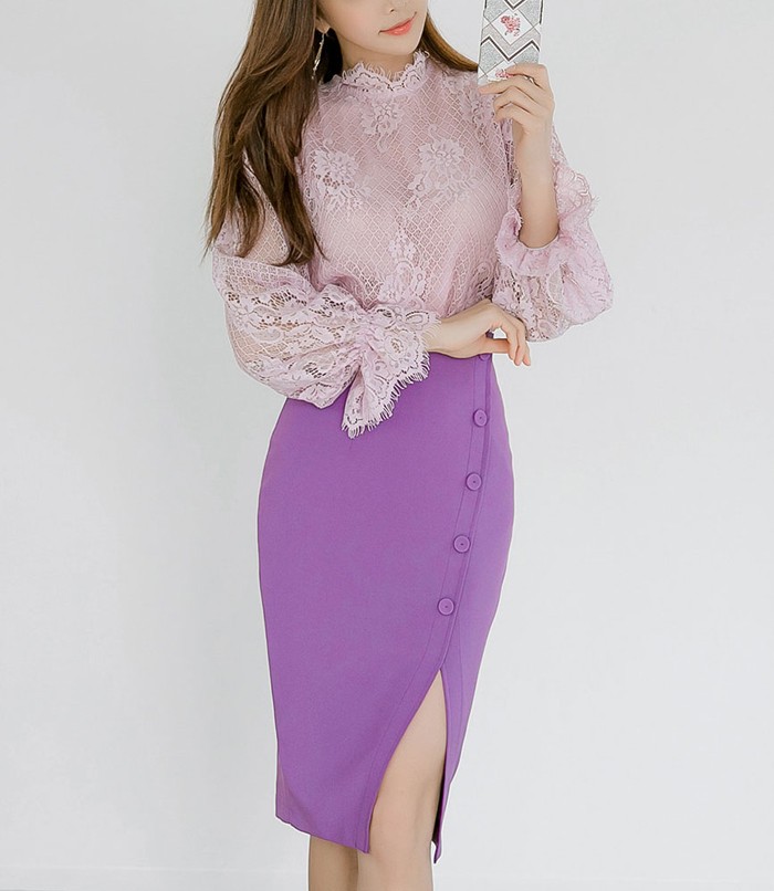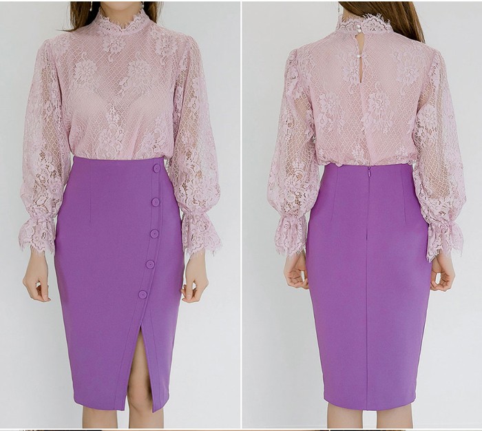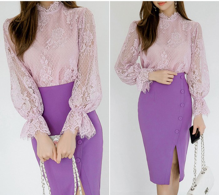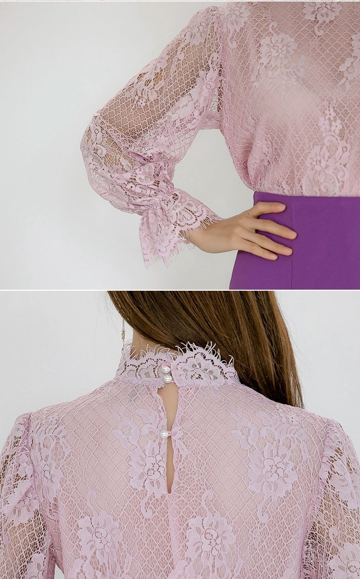 商品名:ブラウス レース ハイネック きれいめ 上品 通勤