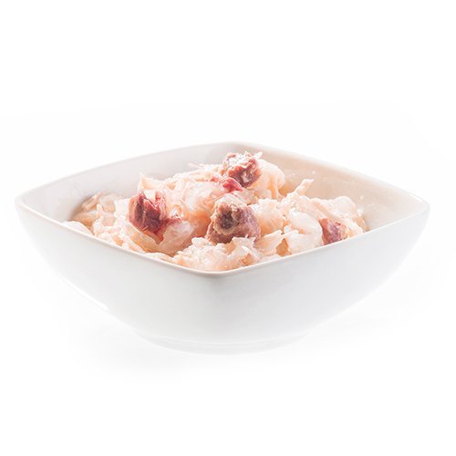 原材料:チキンフィレ58%、ビーフフィレ4%、米1.5%、ビタミンA1650IU、ビタミンD3180IU、ビタミンE10Mg
