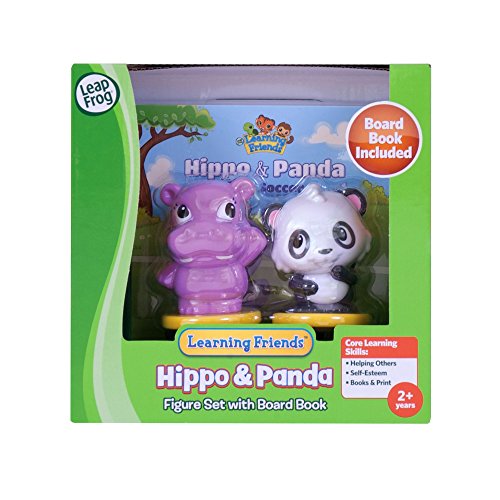 The Learning Friends Hippo & Panda Figure Set with Board Book is a fun way to inspire a love of reading and to start exploring the entire Learning Friends world. Children can get to know their Learning Friends figures as they follow along to Hippo & Panda Play Soccer board book-see how Hippo and her athletic friend Panda learn that the soccer field is the perfect place to practice teamwork! Designed by LeapFrog experts for children ages 2 years and up, the Learning Friends Hippo & Panda Figure Set with Board Book is a great opportunity for young children to explore new words, new concepts and the fundamentals of books and reading, such as turning pages one by one and understanding that text carries meaning. After story time, kids can play and imagine with their Learning Friends figures. Play with the figures, then hear them sing and talk in the Learning Friends Play & Discover School Set. Part of the Learning Friends world, the Play & Discover School Set (sold separately) was designed to help introduce young children to common school routines and prepare them for the first days of school. Learning Friends characters are great companions as your child explores new concepts and worlds, like school and your neighborhood. Figures interact and unlock content in the Play & Discover School Set only. (Sold separately).Feature