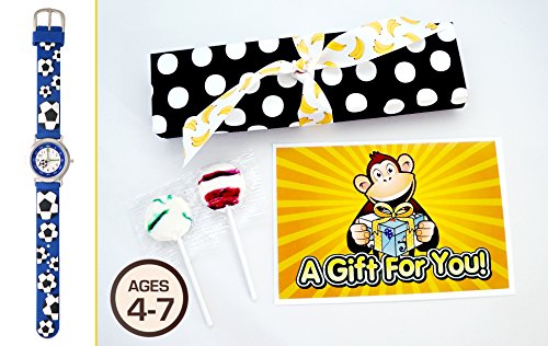 Soccer! (Navy Blue) Gone Bananas Boys Time Teacher Waterproof Soccer Ball Watch