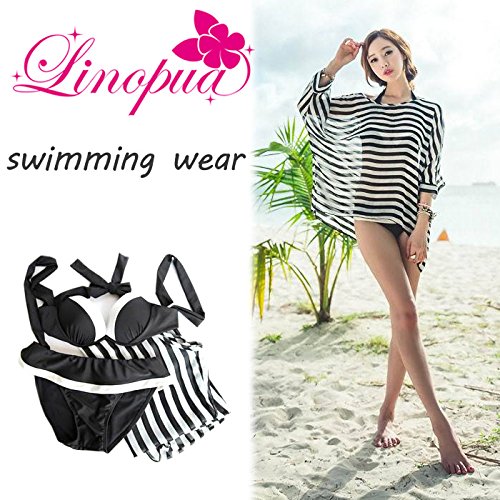-. Title : 【Linopua】 2016 夏 新作 レディース 水着 黒×白 ビキニ ボーダートップス付き♪